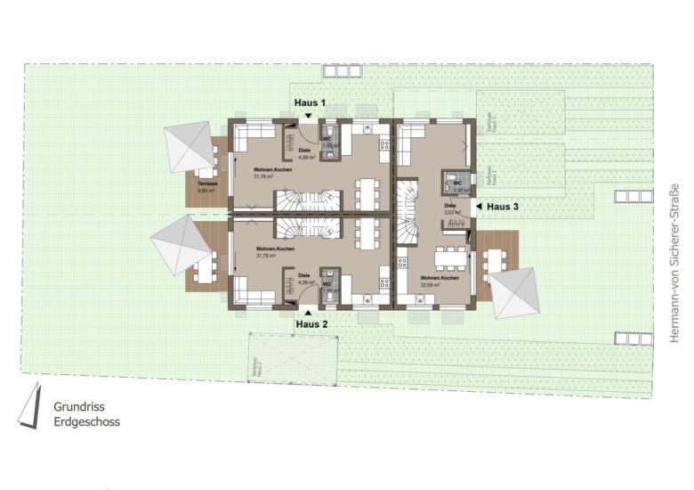 Auf einem 647 m² großen und sehr schönen Grundstück in gehobener und traumhafter Lage Nähe West- und Südpark entstehen drei fantastisch ausgestattete Stadthäuser in hochwertiger Bauweise. Alle drei Häuser haben dank der durchdachten Planung große und sehr gut nutzbare Gärten. Die geschmackvolle Fassadengestaltung, ausreichend Platz für drei Familien sowie ein hoher Wohnkomfort werden Sie begeistern.
