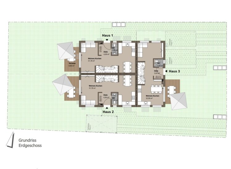 - Kapitalanleger: Vorteile: degressive Neubau-Afa, KFW-Förderdarlehen für Baukosten, perfekte Vermietbarkeit, da kaum Neubau-Häuser am Mietmarkt; minimaler Verwaltungsaufwand bei 3 Häusern (keine Hausverwaltung, Hausmeister usw. nötig)