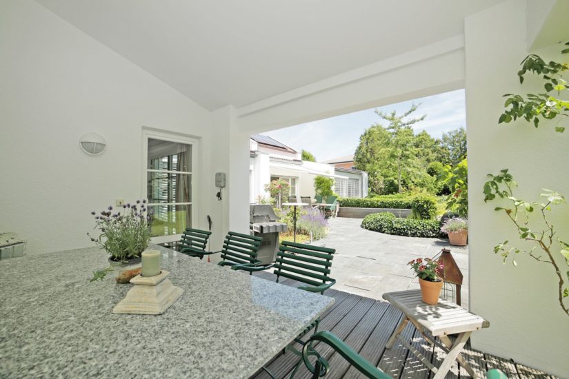 Ein Exkurs in den Garten entführt Sie auf eine sonnige, ca. 40 m² große Süd-Terrasse mit Blick in Ihre private grüne Oase. Eine überdachte Outdoor-Lounge mit Grillplatz und ein idyllischer Gartenteich mit Holzdeck laden zum Verweilen ein. Der große Garten, eingewachsen und liebevoll gestaltet, verspricht Ruhe, Idylle und pure Entspannung.