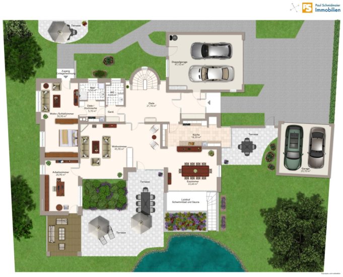 Alle Flächen- und Maßangaben sind ca.-Angaben. Die dargestellten Grundrisse sind eine Illustration und einschließlich der genannten m²-Angaben nicht verbindlich. Irrtum und Zwischenverkauf vorbehalten. Dieses Exposé ist eine Vorabinformation, als Rechtsgrundlage gilt allein der notariell abgeschlossene Kaufvertrag.Für das ausführliche Exposé, für alle weiteren Fragen oder eine Besichtigung steht Ihnen Herr Schmidmaier gerne zur Verfügung. Bitte fragen Sie die Villa formal bei uns an, wir melden uns kurzfristig zurück.