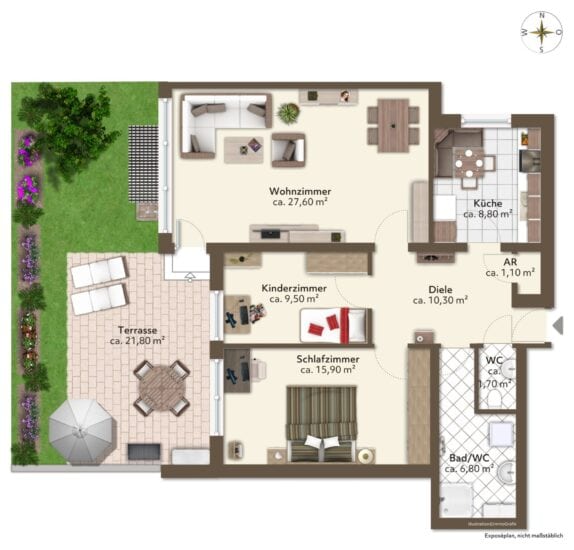 + Garten und ca. 21 m² Terrasse in Westausrichtung