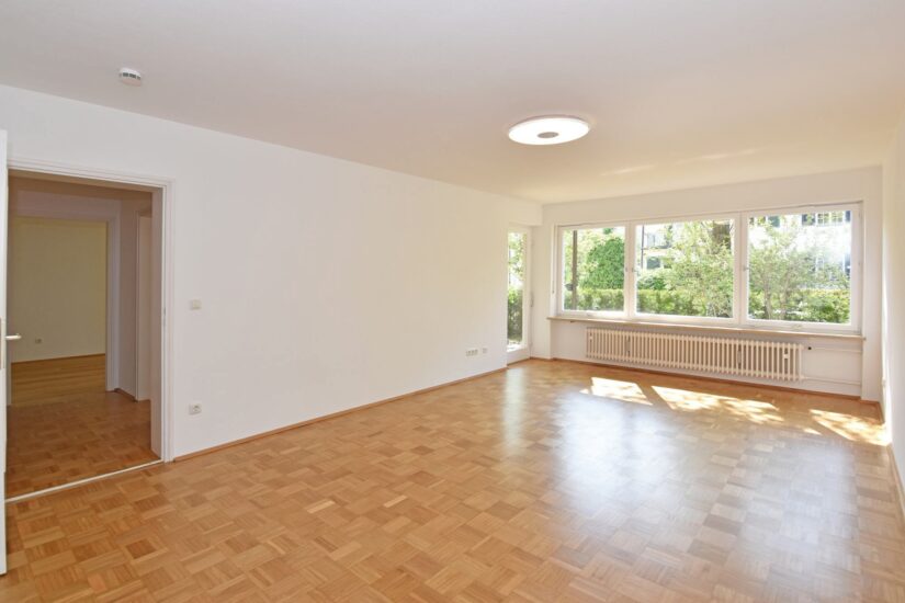 Einzigartige Gelegenheit in der Villenkolonie Pasing I: Diese frisch renovierte und bezugsfreie 3-Zimmer-Gartenwohnung (ca. 88 m²) mit separatem Hobbyraum (ca. 28 m²) befindet sich im Erdgeschoss eines 1970 errichteten Mehrparteienhauses und präsentiert sich in Top-Lage von Pasing-Obermenzing in direkter Nähe des Pasing-Nymphenburg-Kanals.