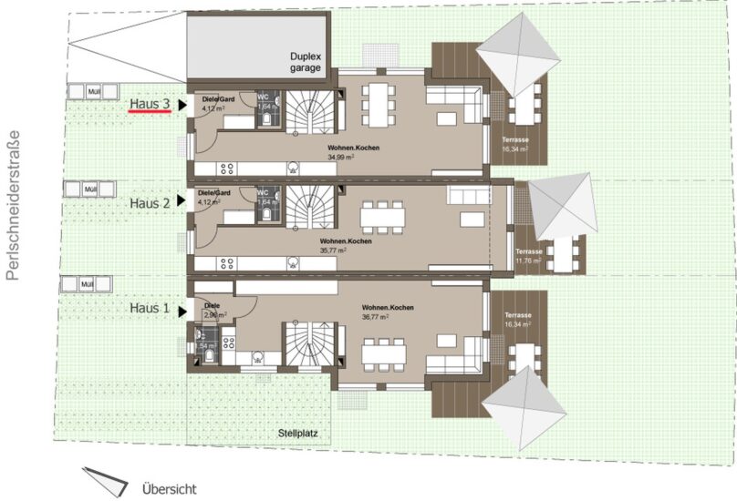 + zwei Duplexstellplätze für Haus 2 und 3Gerne erhalten Sie auf Anfrage die ausführliche Baubeschreibung.