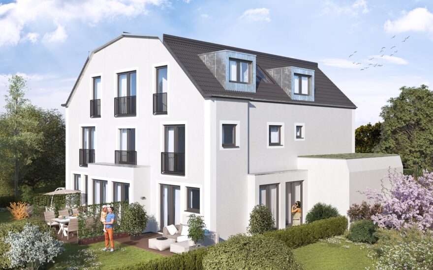 In sehr schöner Lage direkt am Park entstehen drei attraktive, nach Süden ausgerichtete Reihenhäuser in energieeffizienter Massivbauweise.