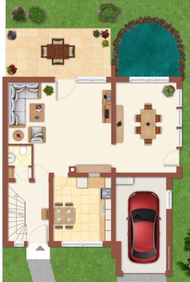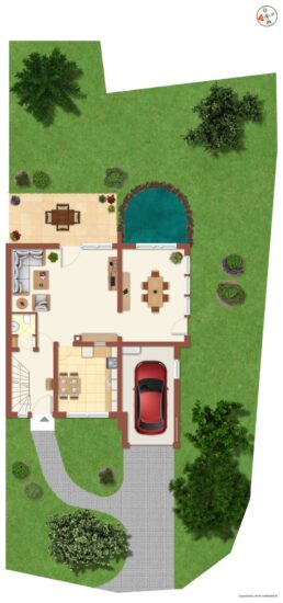 - großer rückwärtiger Garten (ca. 9 m x ca. 14 m) mit Teich sowie großzügiger Vorgarten (ca. 13 m x 9 m)